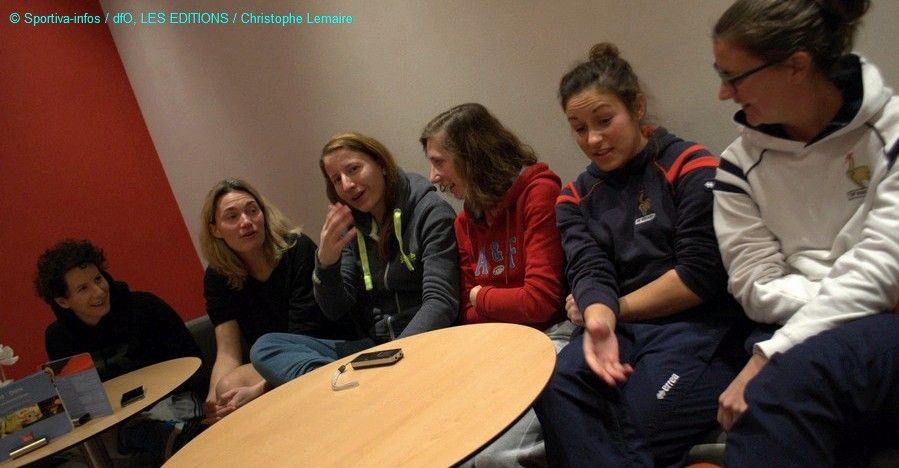 Crosse en main ou pas, elles sont cash et sympas les filles de l’équipe de France, coachée par la légende française du hockey sur gazon : Sophie Llobet. En voici quelques unes, interviewées lors du dernier championnat d’Europe élite disputé fin janvier à Prague (République tchèque). De gauche à droite, «Guéna» Dutel, Caroline Durachta, Alicia Minet, Justine Blondel, Émilie Bègue et Annabelle Got pour qui jouer au hockey sur gazon, converti en salle l’hiver, n’est jamais dû au hasard. Un père, un grand-père, une mère, bref un lien familial et une transmission filiale pour certaines. Le coup de foudre à l'école pour les autres. Voila comment on se retrouve une crosse en main très tôt et, à force de passion et seulement quelques années de pratique parfois, un maillot de l’équipe de France sur les épaules.