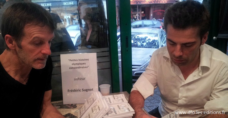 La séance de signature à laquelle a été soumis l’auteur, Frédéric Sugnot, a, finalement, ressemblé à un marathon: débutée à 18h00 très précisément avec l’arrivée de la première personne intéressées, la journaliste Pascale Marcaggi, la triple rencontre 1 auteur + 1 livre + 1 public, s’est allongée jusque sur le coup de 23h00… Deux explications à cela: un punch de haute volée pour agrémenter la signature et des discussions tous azimuts.