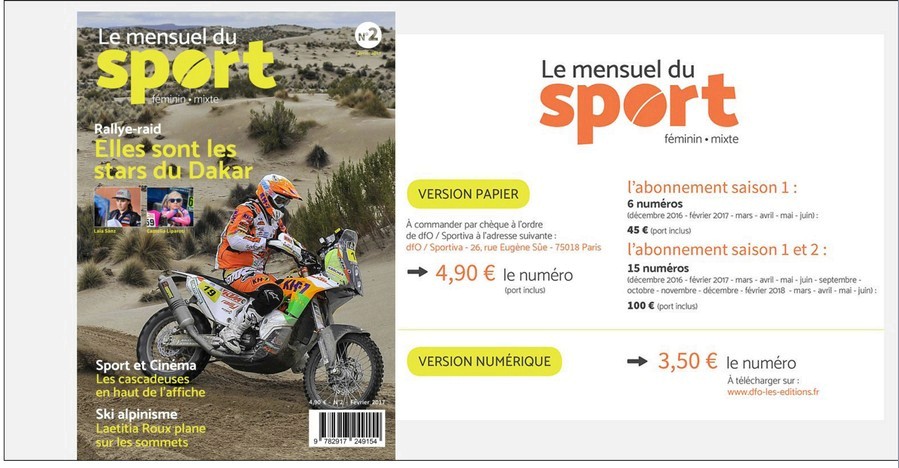 Pour la version papier un chèque de 4,90€ (qui comprend les frais de port) est à adresser à dfO/Sportiva 26, rue Eugène Süe 75018 Paris à l’ordre de dfO/Sportiva